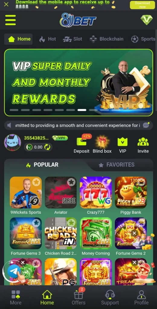 8JJ apk is an online gaming and betting platform where users can play different casino-style games like slots, color prediction, crash games, and card games. Players deposit money, place bets on games, and can withdraw their winnings if they win. The system works on random results, which makes every game round fair and exciting.