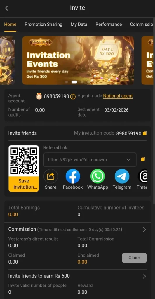 When you invite friends, you earn extra commission on their deposits helping you earn more without playing.