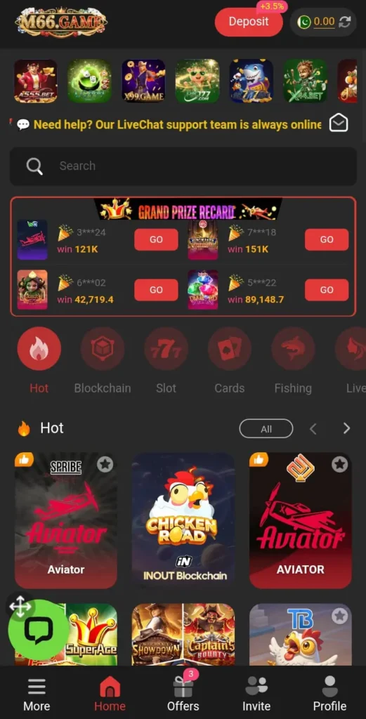 Includes slots, color prediction, card games, and mini casino games. - Fast Deposit & Withdrawal